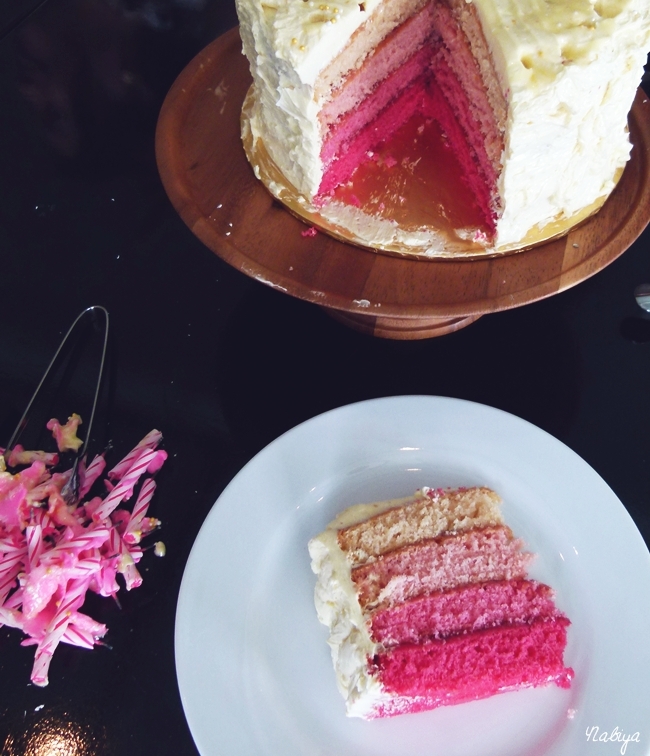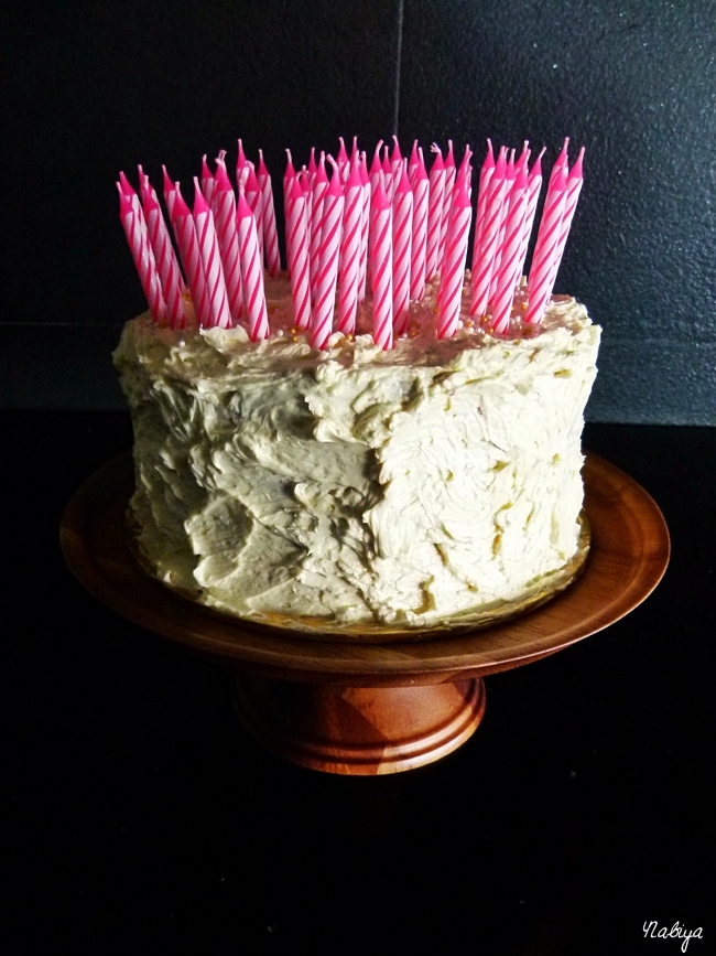 And what a beautiful taste the frosting produces! For the first time, my frosting has not overwhelmed the flavours of my cake, and as The Mothers enjoyed the cake quite a bit… I like to think I did it right this time. No complaints of “Nabiya! This is soooo sweet!” or “A moment on the lips…” and you know how it goes.
