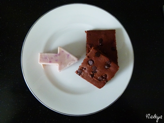 In the picture above, I whipped up a batch of Aunty Rosa’s Chocolate Cake (recipe to come), scattered chocolate chips over the top of the batter and baked thin square layers for about 12 minutes.