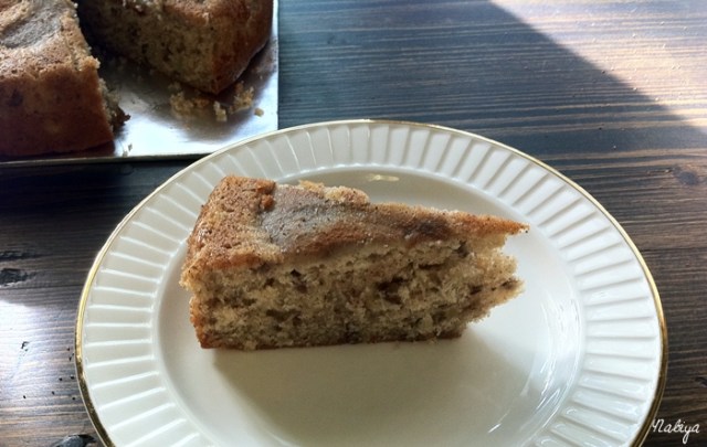 I left it overnight on the counter last night, wrapped in a clean cloth to keep it sanitary. This morning, before heading out to work, I dusted it with cinnamon, cut myself a slice and had it for a very decadent breakfast. I’ve decided to forgo the cream-cheese frosting which is customarily served with the cake, however if you want to, use this recipe and cover the cake as you like with the frosting. I’d just like to tell you that the amazing flavours of the actual cake are likely to be overpowered by the frosting should you choose to do so. Also, you won’t be able to have it for breakfast (guilt-free).