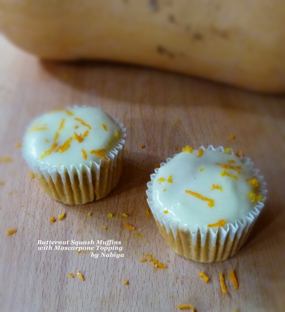 Butternut Squash muffins with Mascarpone & orange zest topping