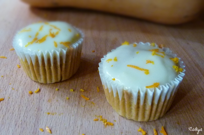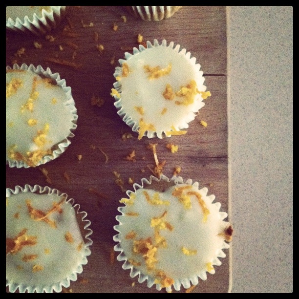 Beat the cheeses together until fluffy and light, then slowly add the sugar until all is fully incorporated. Swirl in the vanilla extract, then once the muffins have cooled, dollop on some frosting and grate the orange zest over the top