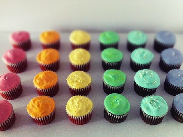 So before I potentially disappear into my writing nook, I’m going to share this picture of rainbow frosted cupcakes with you: