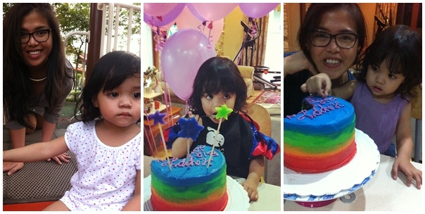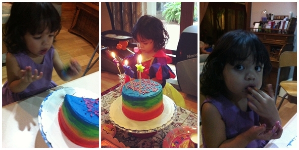 Also, my cousin came up from Borneo this week with her daughter, who celebrated her 2nd birthday yesterday. I baked her a wittle rainbow chocolate cake, and she put on a Snow White costume and proceeded to be cute and princessy about the house! I think I’m in love, guys, seriously, this little girl with her apple cheeks and tinkling laughter just stole my heart. Baking for children who totally love your cake is my new high. Warning: I’m gonna be that aunt with the cake to all my friends kids.