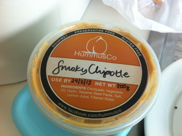 I’ve been experimenting with different types of hummus myself, but haven’t strayed far from the basic recipe, so this Smoky Chipotle hummus was a very nice surprise! It was smoky, true to it’s name lol, and had just the right amount of heat in each bite. I had this hummus on a slice of good grain bread, with some slices of store bought (probably processed) smoked turkey meat, rocket and lettuce. Amazing, and totally hit the spot for workday lunches.