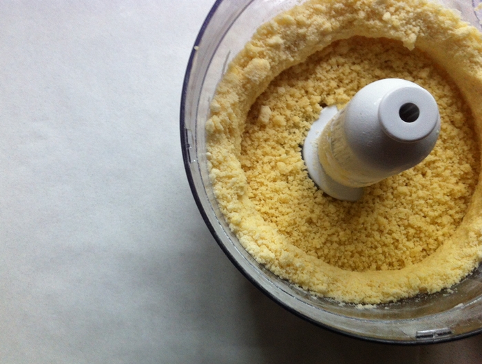 First, we prepare the shortbread crust! This, my friends, is the reason I bought this food processor, so that I may make shortcrust pastry without warming the dough with my hands.