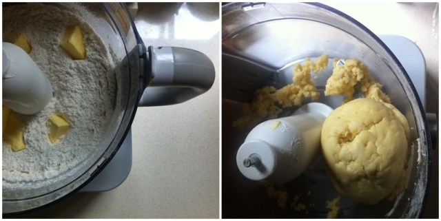 - Pour in 3 tbsp of the ice cold water and whizz until it begins to come together, pour in the remaining water gradually (I find that 4 tbsp is enough) until it looks like it does in the picture below