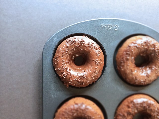 - Transfer the batter into a piping bag (I find this easier than spooning it out bit by bit), and fill the doughnut baking tin until about 1/4 of an inch is left from the top of the mould. Bake for 8 minutes, remove from oven and cool on a wire rack before decorating
