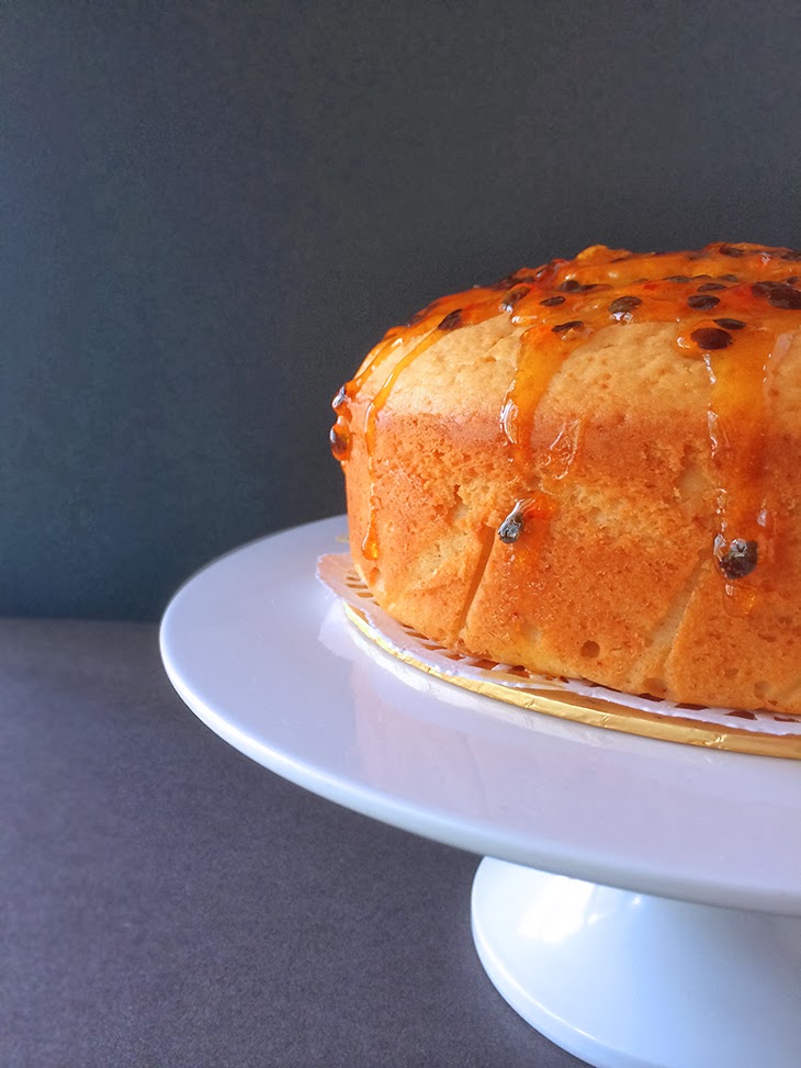 I made this cake weeks ago to bring to a friend’s house over Chinese New Year. For a while I wasn’t sure if I was gonna share the recipe, but I revisited it the other day as my dad’s quite a fan. Also, as I’m going through my Passionfruit Period, I have quite a store of the fruit in my house I needed to use up. I think this may be the last passionfruit recipe I share for a while (or maybe not).