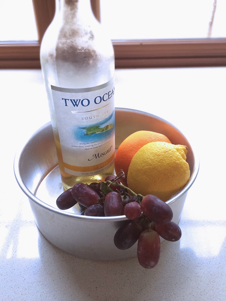 Steph used Moscato in her recipe, a sweet dessert wine. The first time I tried it, I used Sauternes wine as I had some left over (and I kinda love that sweet scent a lot). The second time, I made it for my grandmother – who doesn’t take alcohol in any form – and used store bought white grape juice. And it it’s latest reincarnation in my kitchen, I used Moscato, specifically bought to bake this cake. Each change yielded slightly different results, but deliciously fresh and fruity regardless. I think my favourite so far is definitely the Sauternes wine version.