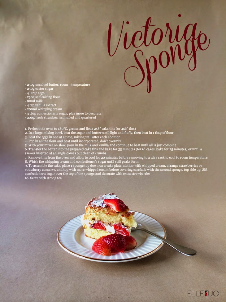 A cake fit for a queen, they say. This humble, no-frills, cake may not be fancy or fashionable, but its origins are far from humble. I spent the most recent public holiday reading up on random Wikipedia offerings, offset by the sudden urge to research Bran Castle (apparently it’s on the market), wandering through the subject of morganatic marriages (there goes the princess fantasies), the Kingdom of Bohemia and the Archduke Franz Ferdinand, and somehow or other I ended up at Victoria sponge cakes. I can’t tell you how I got there, but through endless right-clicking and new-tabbing, my general curiousity led me to one of my favourite tea time snacks! And wouldn’t you know it, it was almost time for tea too!