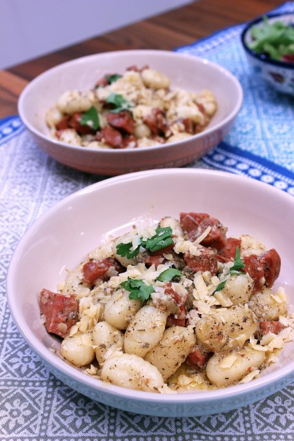 I went back to work last week, and it’s not quite so busy yet but still calls for the usual later evenings. So on Friday night, after a week of craving (quite inexplicably) gnocchi, I decided to cook up this super simple, super easy, super tasty dish for the hubs and myself.