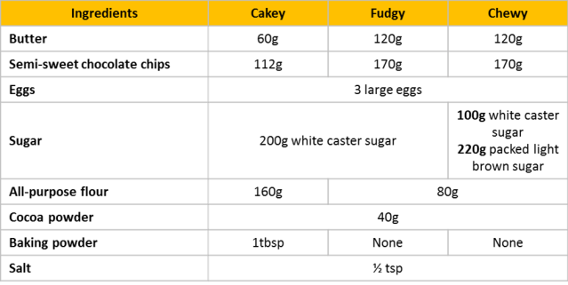 So in my attempt to find my absolute favourite brownie recipe, I decided to make all 3 variations to test them with various friends, family and colleagues and let them decide which one is best.