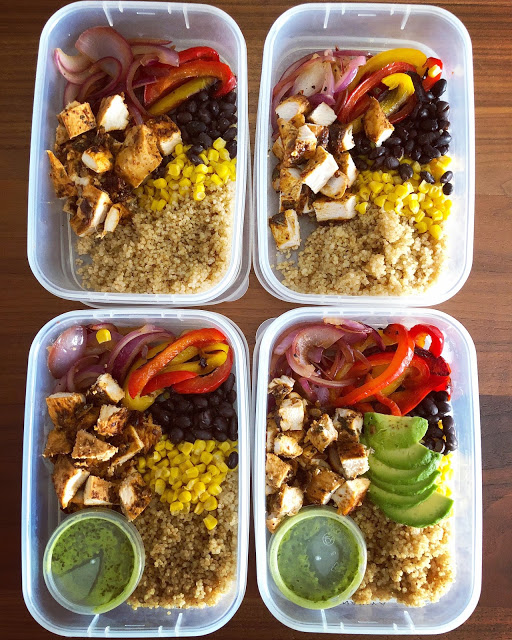 For my meal prepped lunches, I also sauteed some red onions and green and red peppers, throw in some toasted tinned corn kernels and rinsed black beans (also from a tin). I can’t for the life of me remember what I put in the peppers and onions, but both were quite basic and I tend to use an olive oil and butter base with some chili powder, salt and pepper. Sorry! Will update if I find my notes!